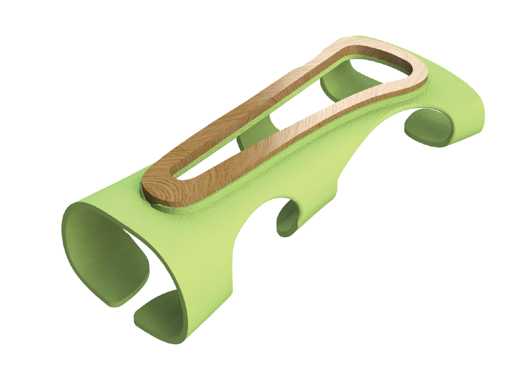 The design is made for the user to help him in stead of disabling. With an overloaded or a fractured wrist you would expect that you should minimize hand movement. During the research it was proven that the opposite was true for the hand itself, only the wrist itself has to be still. The shape enable the user so that it can continue to use his fingers to type without straining his wrist. The inspiration comes from the wooden part of a splint designed in ww II by Charles Eames.